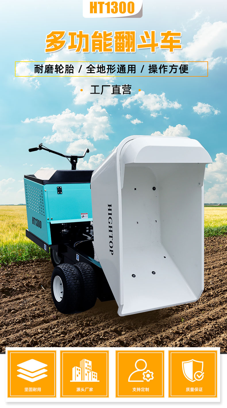 HT1300 多功能翻斗車主要適用于工地水泥石灰、農(nóng)場(chǎng)飼料運(yùn)輸、農(nóng)業(yè)肥料運(yùn)輸、工廠車間倉(cāng)庫(kù)。