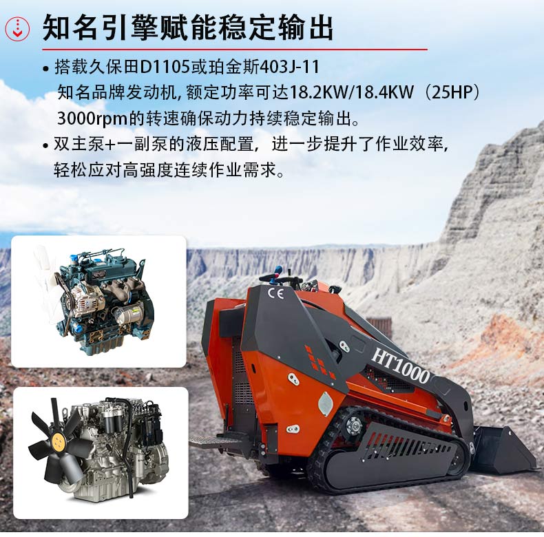 HT1000憑借專業(yè)越野屬性,輕松應(yīng)對泥濘、顛簸等復雜工況。25°的離去角與128mm的最小離地間隙,有效減少作業(yè)時底盤剮蹭風險,確保在坡道、坑洼路面順利通行。履帶式行走設(shè)計配合10km/h的行駛速度,兼顧通過性與移動效率,無論是戶外基建施工還是農(nóng)場土地整理,都能穩(wěn)定前行不“掉鏈”,為多場景作業(yè)提供可靠支撐。